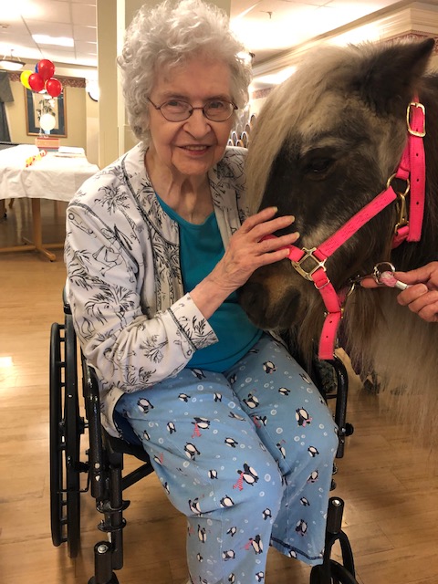 Our last day celebrating Nursing Home Week 2019 was a blast! First, we kicked off the afternoon with a cookout! Thank you to Chef Donly for making us some delicious hot dogs, baked beans, potato salad, and more. The food was amazing! Later this afternoon, we had a special guest stop by Huntington Woods. Our resident loved the visit from Pony Tales Farm horse named Silver! We had a great time celebrating Nursing Home Week 2019. Thank you to our staff and residents for participating in all the fun festivities throughout the week! We can not wait for next year!